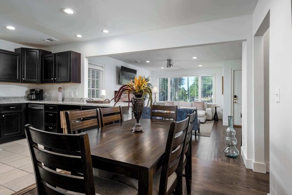 As the day draws to a close, indulge in the ultimate relaxation experience and rejuvenate your senses with a rinse in a steamy shower or a bubbly bath. Our 2 full bathrooms come feature a tub shower combo along with a curated selection of toiletries, bath towels and hand soap. Our half bath is located off the kitchen and is perfect for visiting guest.