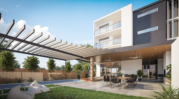 Yes, this property has an outdoor pool. Pool types include exercise/lap pools.