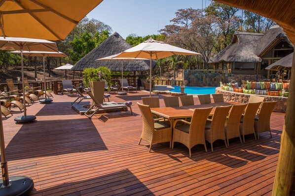 Sebatana Private Reserve combines upscale lodge comfort with natural serenity. Guests dine at the on-site restaurant, relax by the outdoor pool on sun loungers, or take in the surroundings from the terrace. Previous visitors consistently praise the attentive, helpful staff.