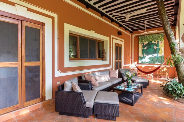 First, Valladolid is a lovely little city. We stayed only two days and wished we had added a day or two more. Second, Danielle (local host) is wonderful. She welcomed us with such hospitality and grace, not just in connection with the property but also with sightseeing tips and lots of other good advice. Third, my kids (two teenagers and a pre-teen) were blown away by this remarkable house, and could not stop talking about it. Setting aside that it is literally a block from the center of the city, it has a beautiful and mysterious air that is so unique and unlike anywhere else we have stayed. My only caveat is that the layout is unusual, in a way we didn't appreciate before arriving. From the front door, there is a large entry hall, followed by a cavernous dining room that is beautiful and enormous but far from the kitchen. That dining room leads to two very large bedrooms. To remain indoors, you'd need to walk through one bedroom to get to the second one, and from there to the main bathroom, although each bedroom also has a door to the outdoors. Separate from that space - i.e. walking down an outdoor path and around a corner, there is the second bathroom, and near that is the large kitchen, garden, and hammock area, and then upstairs is a second hammock area, plus a third bedroom and bath. All of this was fine with us - very unusual but a lot of fun - and the spaces are fascinating and very nicely appointed. Anyway, we loved it and would happily return.