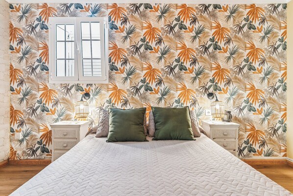 The interior integrates a comfortable living area with sofa, 43" Smart TV and heating-air conditioning for greater comfort, and a fully renovated kitchen equipped with everything you need. From this space we access the most special area of the house, a large outdoor terrace open to nature, equipped with a seating area, barbecue and jacuzzi, a perfect place to enjoy outdoor meals and moments of tranquillity under the Canarian sky.