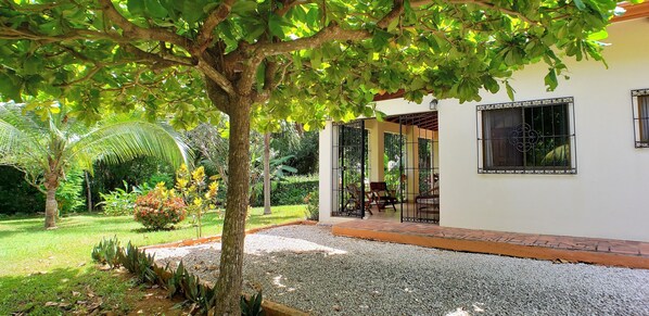 Nestled in the charming town of Playa Junquillal, Casa Margarita offers a tranquil retreat. The fully equipped kitchen lets you cook your favorite meals while enjoying A/C and large closets in both bedrooms. Take in views of the tropical garden from the covered patio or upstairs open air patio.
