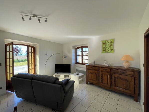 TV, fireplace, books - Maison de Campagne Avec vue sur la Chaîne des Pyrénées (VIC-EN-BIGORRE)