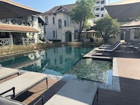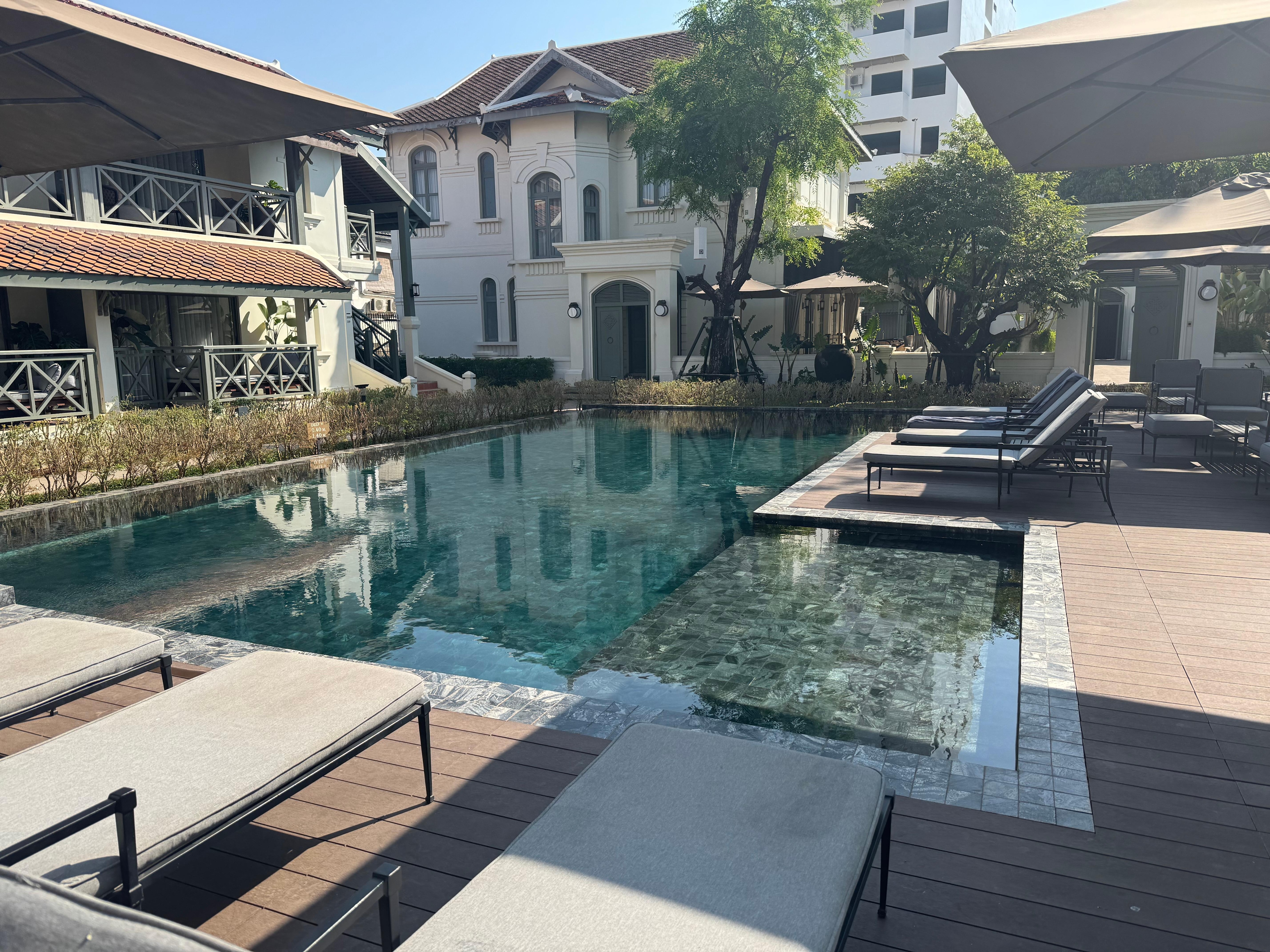 Travelers can find serenity in the garden or outdoor pool at Souphattra Heritage Vientiane, where a free cooked-to-order breakfast starts each day's adventure