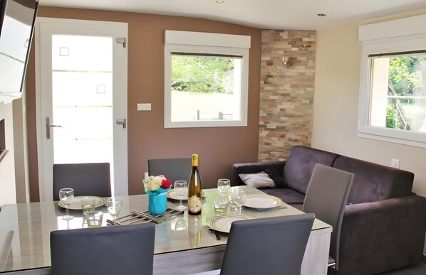 The gîte is in a peaceful village on the edge of the forest, with hiking and mountain biking trails accessible directly from the property. Enjoy peace and relaxation in this accommodation, offering all the comfort you need for your stay.