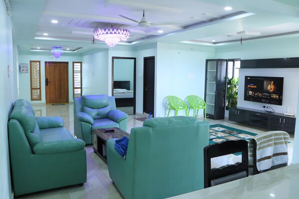 1st floor 3-bedroom beachfront apartment in Visakhapatnam with AC, WiFi