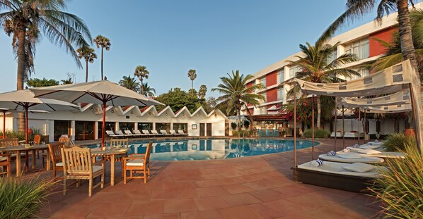 The Park Visakhapatnam is oceanfront with a private beach, rooftop terrace, and outdoor pool. Guests can dine at four restaurants or book treatments at Aura spa. The hotel is in excellent condition, as per guest feedback.