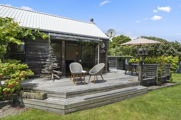 Nestled in the idyllic Waikanae Beach location, Waimea Cottage welcomes you with its vaulted ceilings and exposed wooden beams. Unwind in style and comfort in two spacious bedrooms or cozy up by the fireplace, enjoy a meal on the alfresco dining space or grab a drink from one of several local restaurants within walking distance.