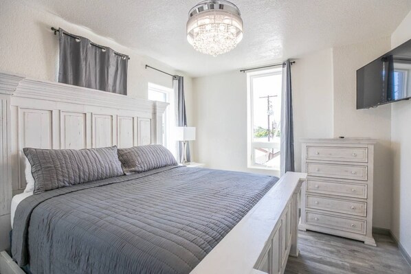 Loft #4 includes a Queen Size bed within a private bedroom and an additional King Size bed within a private bedroom. Complete with 2 flat-screen TV's, High-Speed Internet, 200 TV Channels, & Netflix. A separate sitting area with a private coffee nook complete with a microwave and minifridge. A private bathroom with a rainfall glass shower and lighted mirror.