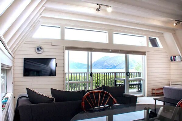 Perched on the lake front, this 4-bedroom A-frame charming lake house in Lake Hawea offers a haven for outdoor enthusiasts. Enjoy panoramic views lounging on the deck or indulge in adventurous activities like hiking, fishing, and biking with direct access to trails and lakeside paths.