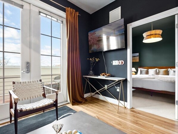 King Bed! Private Office! Garage Parking! You'll love coming home to this stylishly designed executive home. Nestled in Old Town, Alexandria, this suite blends elegance & function.
