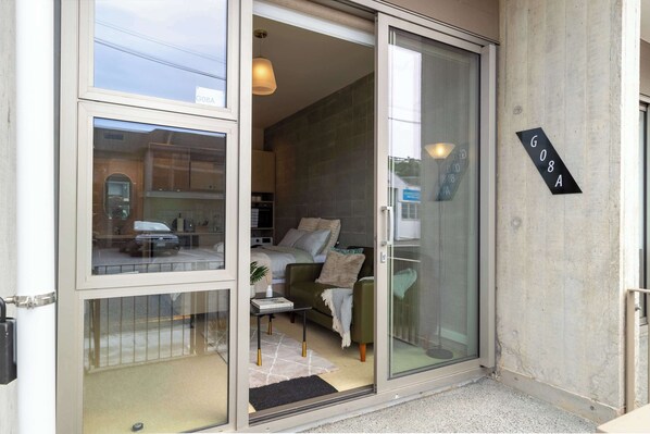 Slide open the door to your private balcony and enjoy fresh air with your morning coffee or an evening drink. This simple yet stylish studio is perfect for guests wanting comfort, convenience, and a great location.