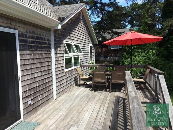 Outdoor dining - Kid-Friendly Ridgevale Beach is an easy stroll from this comfy beach house! (Chatham)