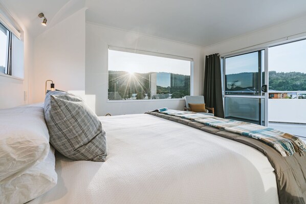 Overlooking Whangamatā harbour, BEACH HOUSE_Whangamatā (MAX) is a haven for large families or groups. Enjoy water views from the main house, gas BBQ on the first-floor deck, and exclusive use of all areas. With Wi-Fi Ultra Fast Fibre and Smart TVs in both the Beach House lounge and Apartment connected to Netflix apps via remotes.