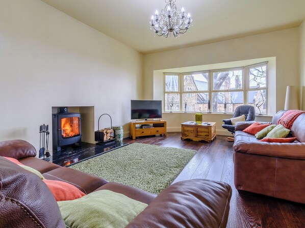 Living room: Smart TV, Woodburner