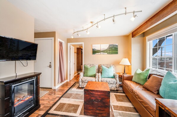 New! Cozy 2bed condo in the heart of Whitefish — rustic charm meets downtown convenience.