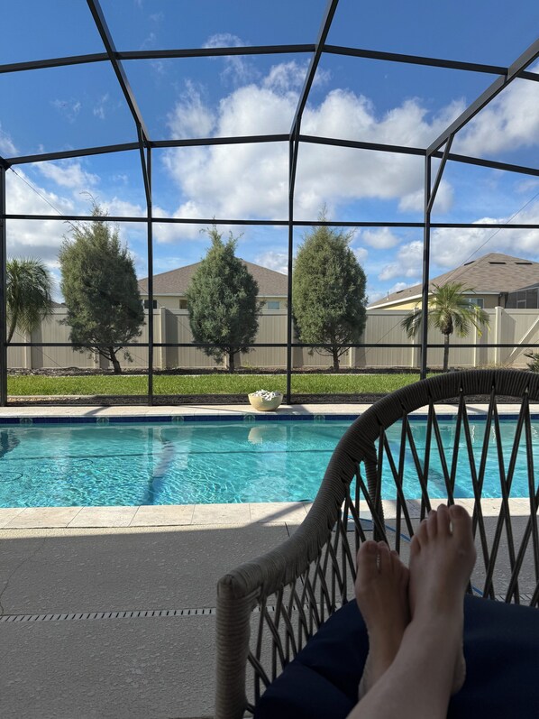 Does SNOWBIRDS! Large 2 BR Heated Salt water pool home 10 minutes from The Villages! have a pool?