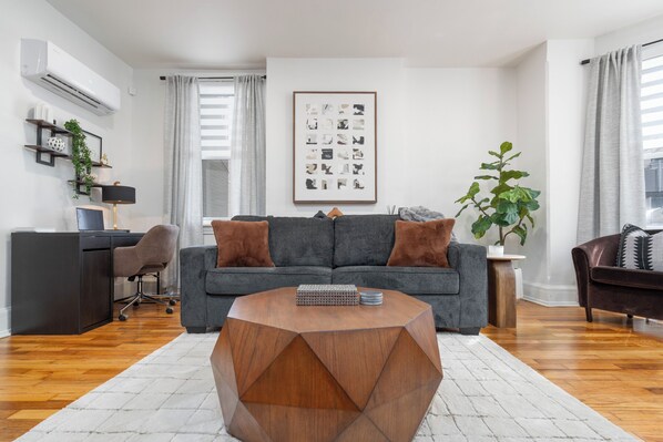 Professionally remodeled with intention and designed for guests who appreciate curated spaces, Trenton Place offers a first-floor residence where historic character and modern refinement coexist seamlessly. From the moment you arrive, the space feels calm, composed, and thoughtfully styled — not staged or generic, but created with long-term livability and visual harmony in mind.