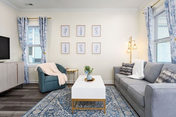 Nice, small one bedroom unit. Recently redone and nicely appointed. The kitchen is sparsely equipped, but quite functional. For example, I had to buy a cutting board to make a salad as there wasn't one available.The unit has a horrible smell eminating from the laundry room which is located in a closet in the bedroom. We emailed with the owners on several occasions to try to get it rectified. We went out and bought bleach to clean the washer to no avail. The owner sent in a maintenance person to perform an ozone treatment which also didn't work. The owners then sent us the Tide washer cleaner to use. This also did not work. The owner then told me that she would get someone in there to identify the root cause AFTER we vacated. Clearly, that did us no good. I had daily emails with no resolution. We had a hard time sleeping in the unit as the smell was so bad.On our last night, the owner had her management company call me which really set us off. The management company asked if I would accept a 50 refund to give them a 5 star review. I found this very insulting and degrading.