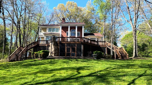 Our spacious home and property offers peaceful ,serene views of Tim’s Ford Lake with easy access and no stairs to the dock and lake for you and your family to enjoy. Our spacious home features an outdoor deck and a screened porch for additional areas to relax and make memories together with friends and family. We enjoy stunning sunsets in the evenings from our two story dock right on the water. We keep our boat stored in the slip but have plenty of room for your boat to be tied up to our dock.