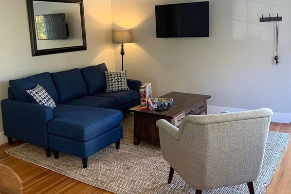 Our 2 bedroom getaway is nestled in the heart of downtown Wolfeboro amidst shops and restaurants! We have a spacious two-bedroom with a living area and kitchen as well as one full bath. Come here with family or friends when looking to take a vacation. Water access at the end of the street! Brewster Beach is 0.6 miles away and has public access as well as lifeguards on duty!