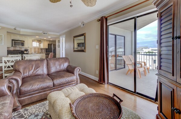 This condo unit includes one bedroom, one full bathroom, 644 sqft. Fully equipped kitchen, open concept dining area, living room, "bunk bed nook" with two adult size twin beds, & washer/dryer. Relax and unwind on your balcony with views of the ocean. Take a dip in the pool overlooking the beach. Park your car in off street parking and walk to everything. Steps to the beach, restaurants & shops.