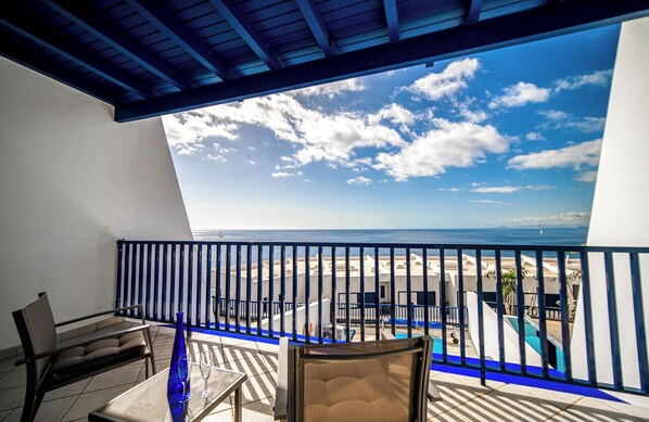 The outdoor oasis of Casa Bajamar is a paradisiacal extension of the interior, featuring a private heated swimming pool surrounded by sun-drenched lounging areas, and an alfresco dining space where guests can savour culinary delights under the canopy of the clear Canarian sky while taking in the incredible ocean views.