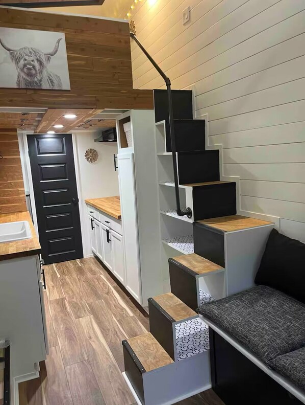 Reconnect with nature at this mini ranch, where an 180 square feet tiny home awaits. Wake up to the sounds of chickens, turkeys, goats and Highland Coos while taking in the direct view of Emus Karen and Joe. Roast marshmallows in the fire pit or relax in your own private jacuzzi for a truly immersive experience.