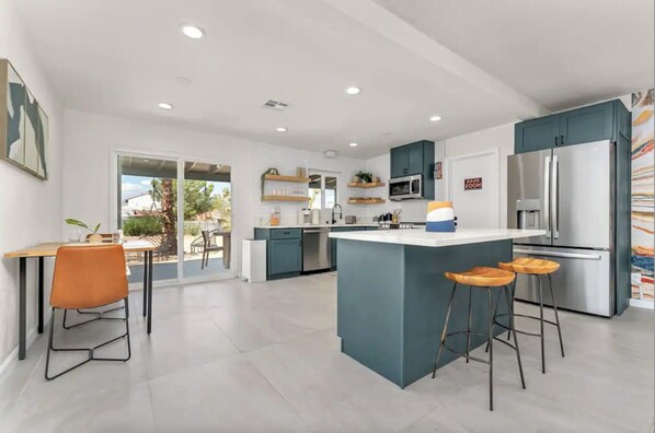 Kitchen includes: • Pots & pans • Coffee maker • Toaster • Microwave • Salt & pepper • Essential cookware Ideal for long weekends, remote work stays, or extended desert escapes.