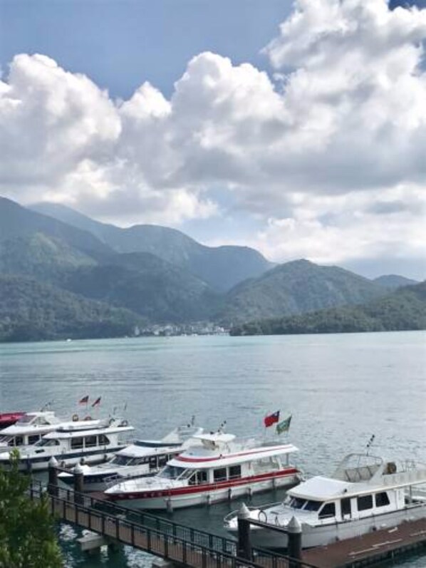 Travelers return to comfort and convenience after exploring the natural splendor of Sun Moon Lake's shimmering waters and forested shores