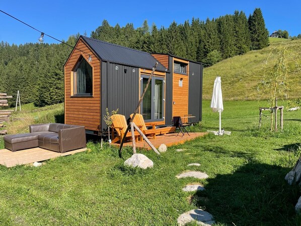Escape to a peaceful countryside retreat at The Alpine Experience 1 by Tiny Away! Tucked away in the sunny Karawanks, Austria's southernmost mountain range, our tiny home offers several outdoor adventures like hiking, rock climbing, paragliding, and swimming at a nearby reservoir.