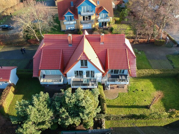 Separate entrance 1. Floor, quiet location about 400m walk to the beach (7min) and 200m to the center, balcony with dining table and modern lounge furniture, direct view of the adjacent nature reserve, garden use, 2 bedrooms (4 people) sofa bed (2 people) + baby bed, 2 bathrooms with shower & toilet, towel radiator in both bathrooms, hairdryer, fireplace, open living-dining area, fully equipped kitchen, refrigerator with freezer, dishwasher, electric stove with ceramic hob, oven, microwave, coffee machine, kettle, toaster, egg cooker, 2 large flat full HD TV, SAT, DVD player, hi-fi system with CD, radio, cassette, aux connection for external devices with jack input, W-LAN, telephone free of charge into the German landline network, laundry basket and rack, iron and ironing board, washing machine and dryer for renting. Bicycle carport in the garden. Allergy-friendly furnishings, insect protection and a safe.