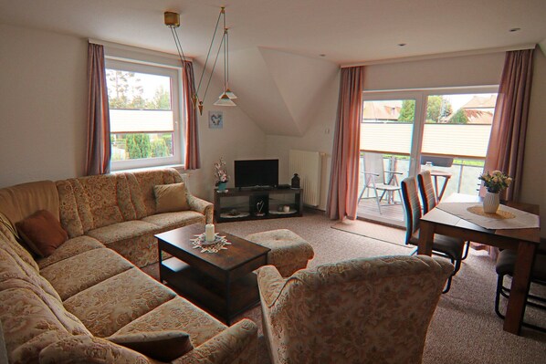 Baltic Sea vacation for the whole family! This inviting and cozy holiday apartment with balcony and WiFi is located on the 1st floor of an apartment building with a total of 4 apartments. The Baltic Sea beach of Zinnowitz can be reached after a short walk. This apartment is equipped with everything you need for a relaxing vacation. The furnishings are bright and modern. The apartment building is in a quiet location on a closed and very well-kept property. Here you will be warmly welcomed by the landlady. In a bicycle carport you have the opportunity to charge e-bikes on site (for a small fee). The charming Baltic Sea resort of Zinnowitz is located in one of the narrowest parts of the island, which is characterized by the Baltic Sea and the Achterwasser. At the beginning of the 20th century, hotels and guesthouses were built here in the well-known spa architecture, which together with the spacious promenade create a beautiful picture and invite you to take an evening stroll. Highlights included: All consumption-dependent energy costs WiFi Free parking space Activities nearby: The gently sloping sandy beach is a paradise for little shell hunters and water lovers, but sun-hungry adults also feel at home here. If the sun doesn't shine, just visit the Bernsteintherme with its 850 m² seawater swimming area. Tip: a diving trip with the diving bell on the pier and excursions by boat on the Baltic Sea or the Achterwasser.