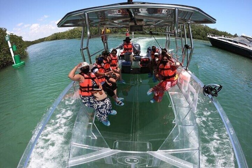 1-hour Clear Boat Tour in Nichupte Lagoon from Cancun