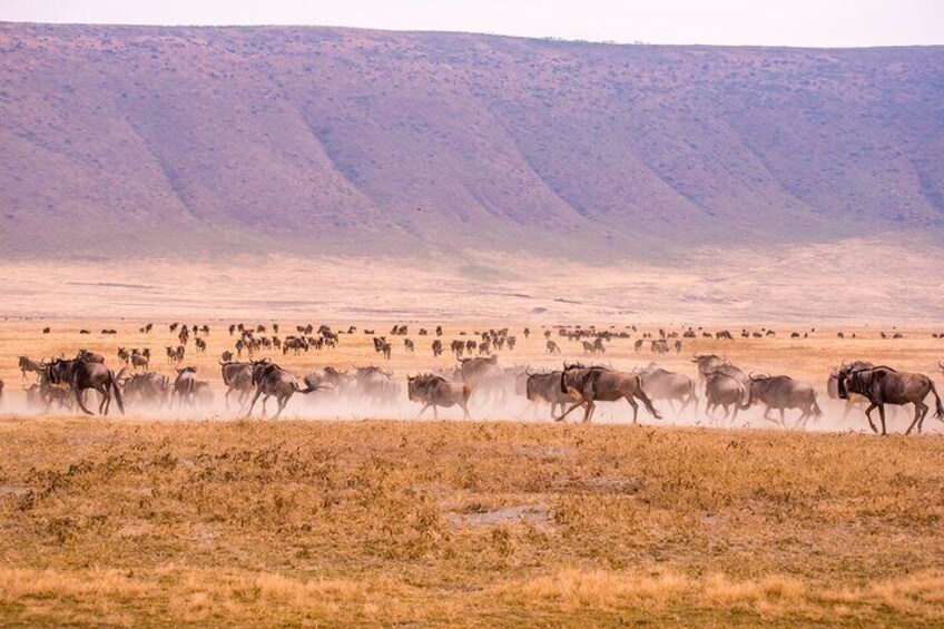 You’ll wake up early to witness the breathtaking sunrise over the Ngorongoro Crater. After breakfast, embark on a guided tour into the crater, one of the world’s most unique wildlife havens, where you'll have the opportunity to see a wide variety of animals, including the Big Five in their natural habitat. Spend the day exploring the crater's diverse ecosystems, from lush forests to open grasslands, while enjoying a hot picnic lunch amidst stunning scenery. In the afternoon, you'll continue with an afternoon game drive before heading to your campsite for a relaxing evening.