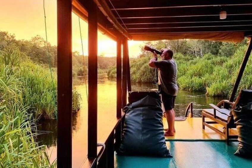 River cruising into the Borneo legendary rainforest. Staying on the typical boat called kelotok, your floating homestay.