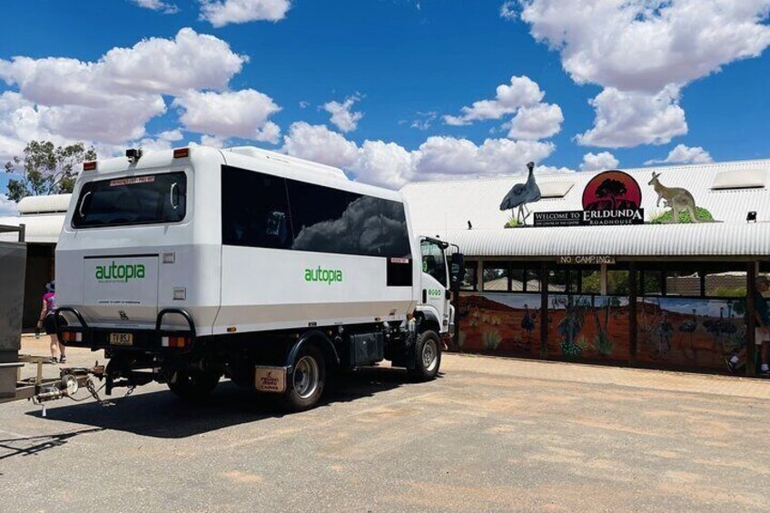 4x4 Off-Road Outback Vehicle: All-terrain 4x4 mini-coach, comfortable seating, designed to go off-road and explore more of outback Central Australia.