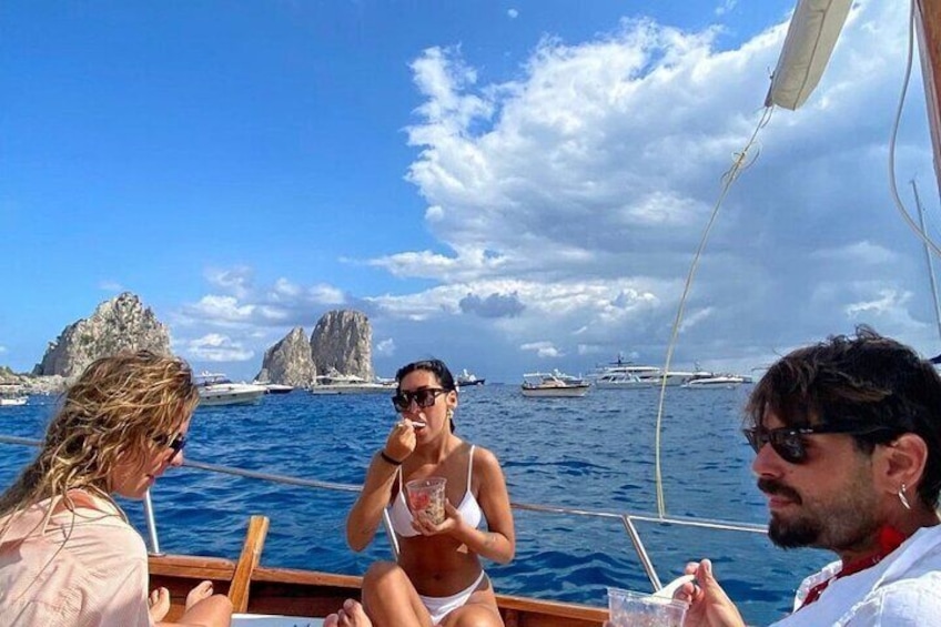 3 Hours Private Capri Boat Tour with Pasta and Prosecco
