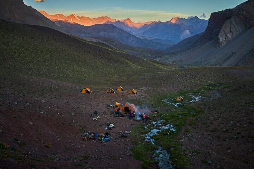 - Pair of glacier glasses with side cobres (100% UV), headlamp, sleeping bag, hiking poles, mattress, utensils, sun cream, lip balm, water bottles, large backpack, camera, batteries, personal hygiene kit, personal first-aid kit