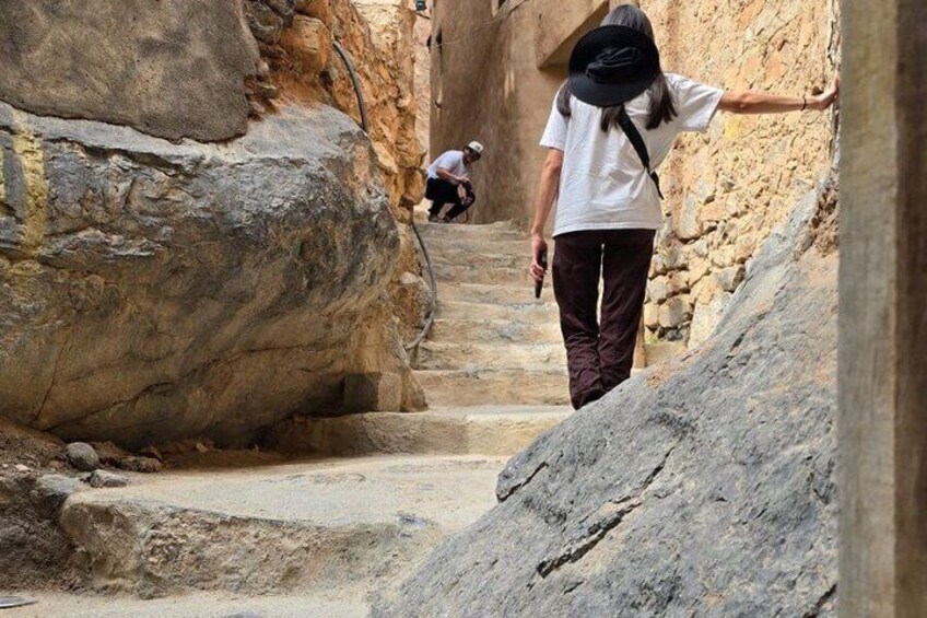 home to the mountain village of Misfah Al Abryeen, where some of the oldest preserved houses in Oman can be found, To the next stop in Bait Al Safa an old house converted into a famous living Omani Museum.