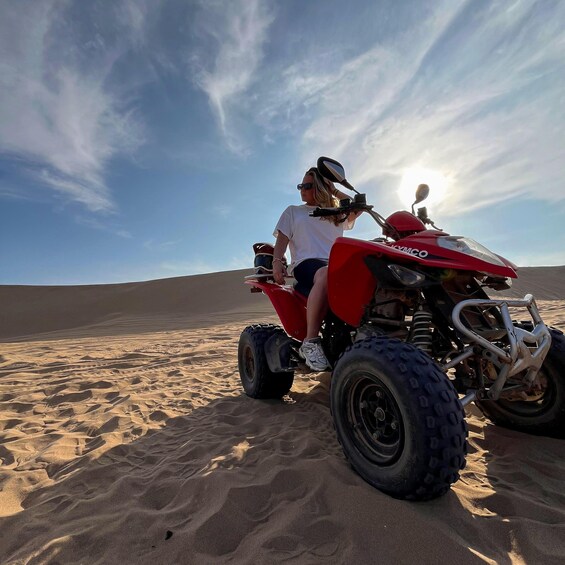 Whether you’re a seasoned rider or a complete beginner, this experience blends high-energy fun with raw natural beauty and warm Moroccan hospitality. Your adventure begins with a safety briefing and a short training session. Our experienced guides will equip you with high-quality protective gear (helmet, goggles) and ensure you're fully comfortable before you set off.