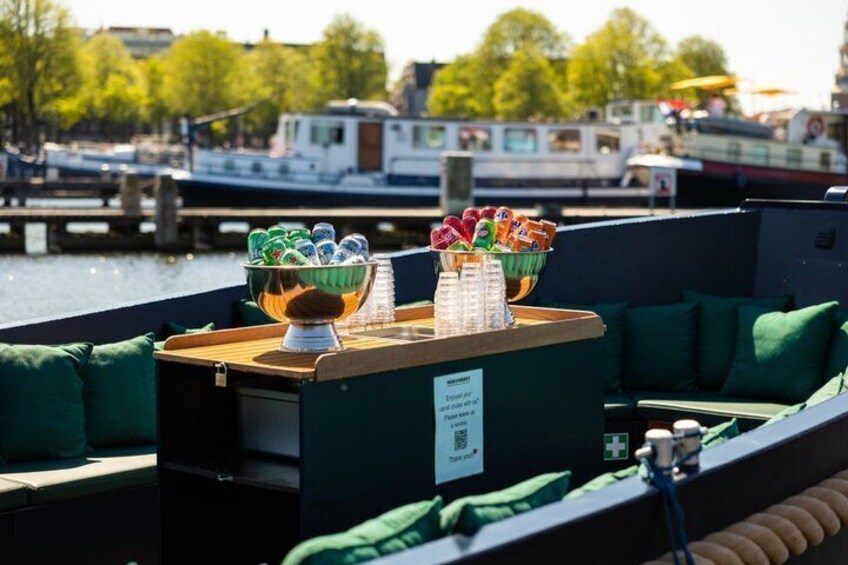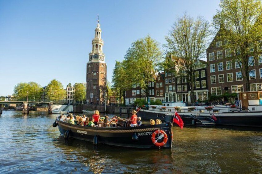 Amsterdam: Guided Open Boat Canal Cruise Unlimited Drinks Option