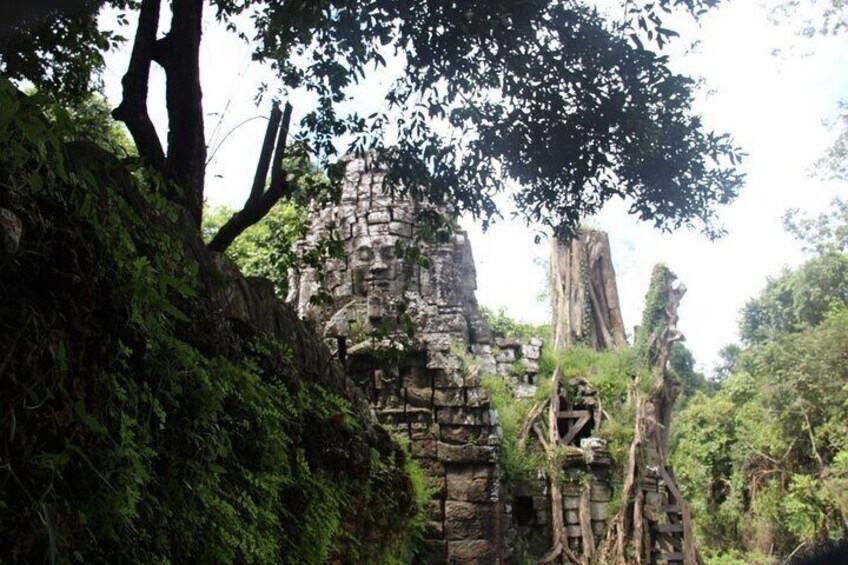 Similar to the nearby temples of Preah Khan and Ta Prohm, Ta Som remains largely untouched, with trees and vegetation intertwined with its ruins.