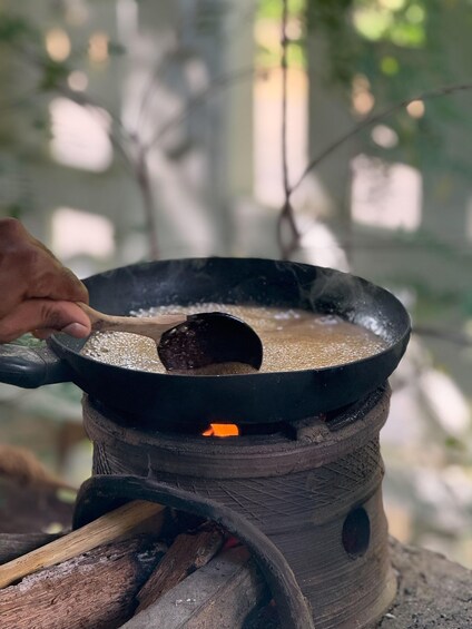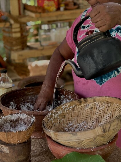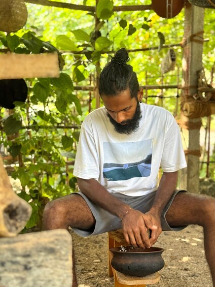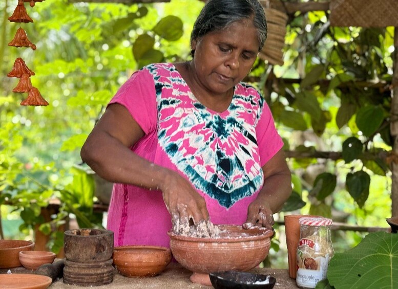 Tucked in a quiet village surrounded by lush coconut palms, the air thick with the scent of blooming hibiscus and cardamom, you will step into a world that felt both timeless and deeply alive. This is not just a cooking class—it was a homecoming. Ancestral, rhythmic, and grounding. A sensory journey into the heart of Sri Lankan food culture, guided not by celebrity chefs or high-end kitchens, but by a woman simply called “Mama”—a guardian of traditional knowledge, healing spices, and soulful cooking.