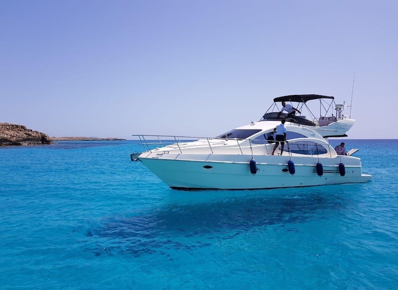 Valid for 3 Hours, Ayia Napa: Explore Blue Lagoon on board of luxury Azimut 42 in English