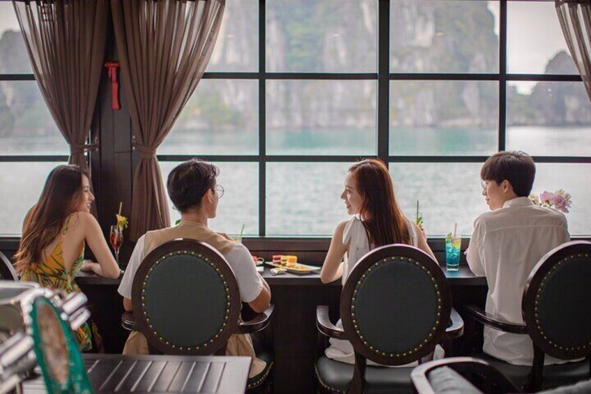 11h30 - 11h50 AM: Arrive at Halong International Port, the crew warmly welcomes you aboard.