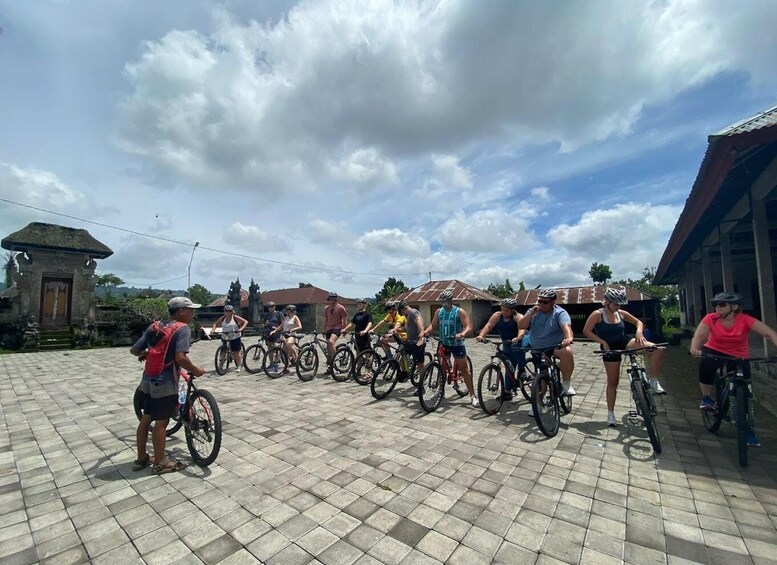 Embark on a guided cycling tour of Bali's countryside and immerse yourself in the local culture. Visit a school, rice fields, a Balinese home, and a temple. Enjoy a coffee break, breakfast, and lunch, and take in the stunning views of Mount Batur.