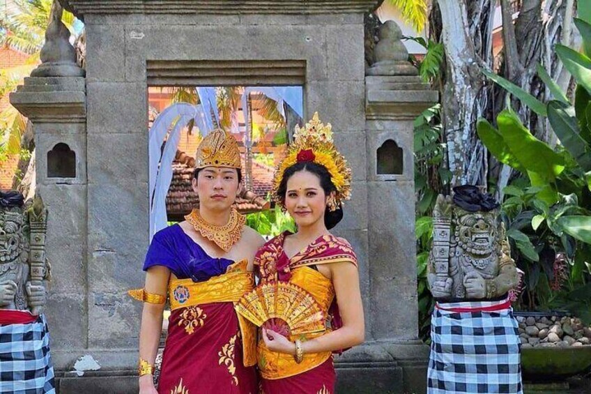 Balinese Traditional Custume MakeYour holiday More memorable with Balinese Custume Perhaps you've imagined being a Balinese king and queen dressed in full traditional Balinese attire. Afterwards, we'll immortalise you in traditional attire with photos. We now offer an option for those holidaying on the Island of the Gods photo package featuring traditional Balinese custume. Name of the custume is Payas Agung classic & modification is worn during Balinese wedding ceremonies.