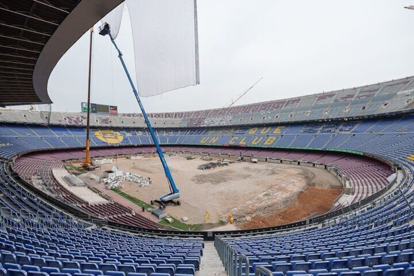 - The Camp Nou Stadium is currently under construction. Access to the pitch and stands is restricted, but visitors can still enjoy the construction viewpoint, the FC Barcelona Museum, and the RoboKeeper Challenge.