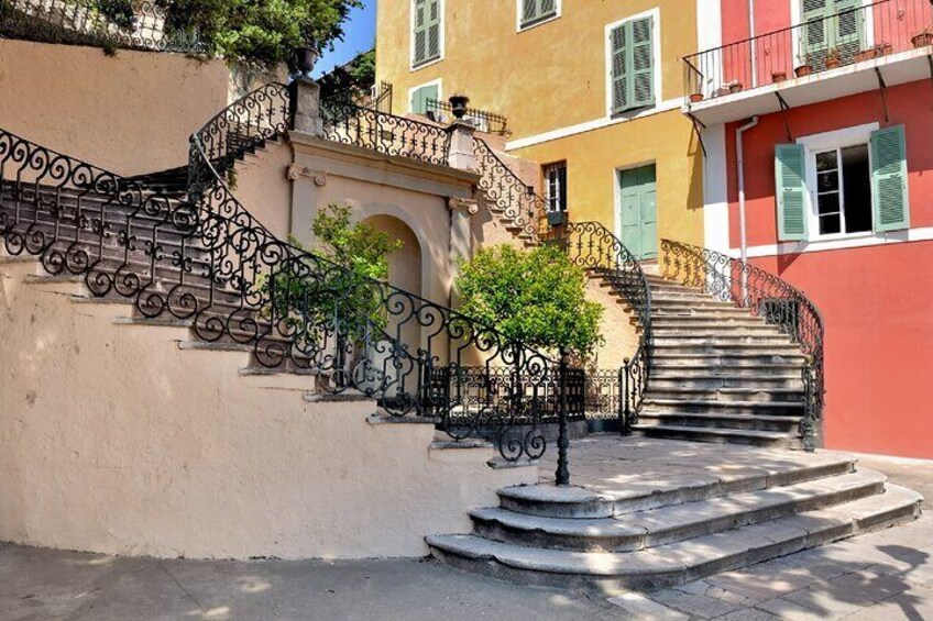 Before focusing on the staircase in front of you, turn around and enjoy the scenery. From here, you have another perspective of the Old Port, including the bell towers of the Saint-Jean-Baptiste church that unfold behind the masts of the many boats.